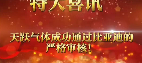 恭喜千亿国际游戏官网气体再次通过比亚迪公司严格审核,合作至今已有十年!!!